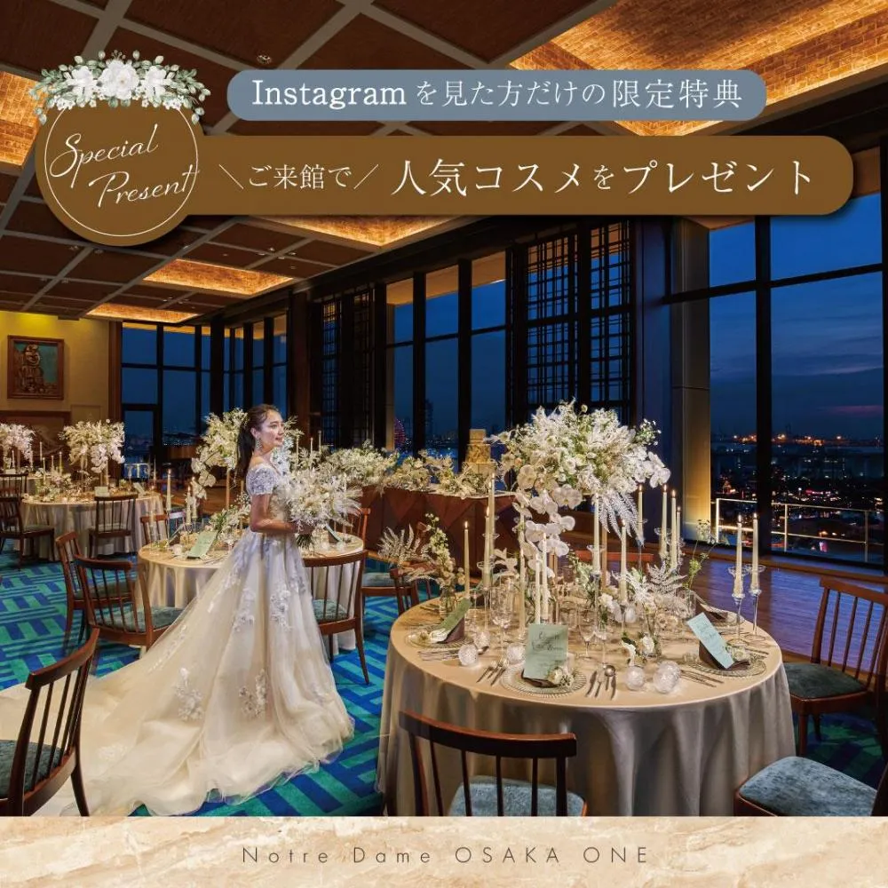 ノートルダム大阪ONEの大人気貸切3会場をじっくり見学!純白チャペル&選べる3つの披露宴会場&絶景ロケーション体験♪当日をイメージできる豪華試食付き!最大140万円特典で人気な時期の結婚式がお得に!